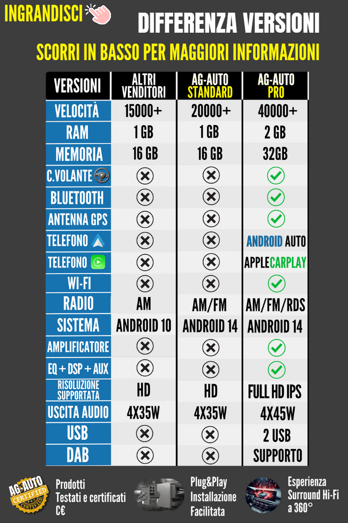 - Compatibilità Universale, visualizza tutto direttamente sull'autoradio.