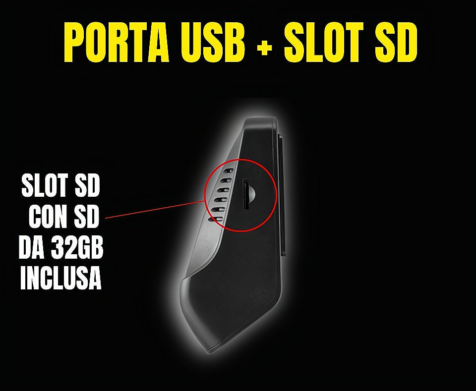 • Inclusa di G-Sensor, in caso di incidente registra la scena in maniera automatica