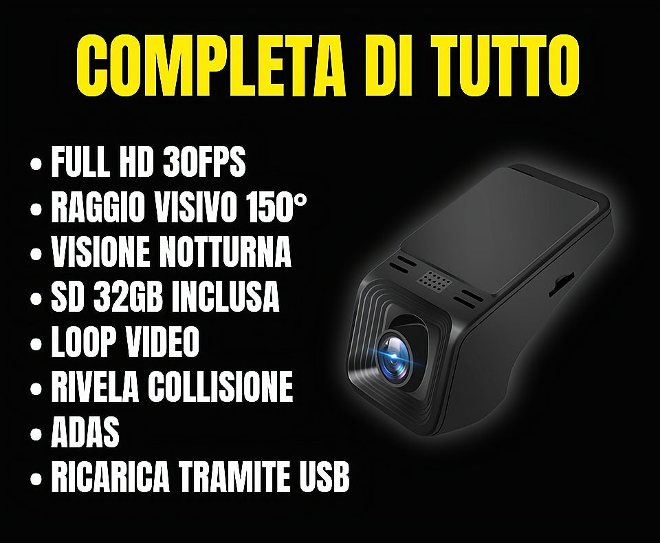 Dash Cam Pro AI | ADAS Professionale Car DVR ADAS Dashcam DVR Video Full HD 1080P con Visione nottura Night vision USB TF SD Card / registratore incidenti automatico per autoradio