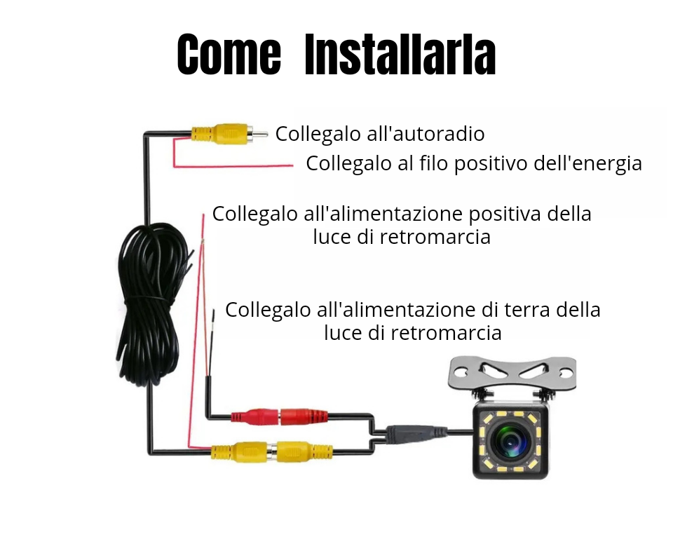 - HD con grandangolo a 170° per una visione del retro dell'auto più ampia