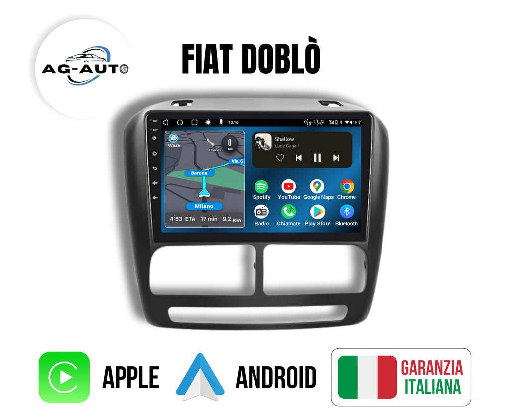 Fiat Doblò (2010-2015) 9 pollici | Mascherina Inclusa Autoradio 2 Din Android auto + Carplay / Stereo Touch 2/64gb - 4/64gb | Navigatore GPS + Bluetooth + Wifi+ 2 porte USB + AUX