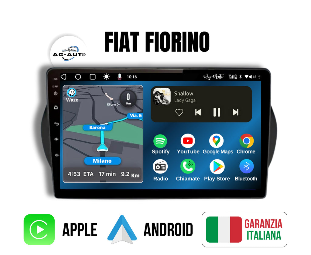 Fiat Fiorino - Qubo (2008/2017) | 9 pollici | Mascherina Inclusa Autoradio 2 Din Android auto + Carplay / Stereo Touch | Navigatore GPS + Bluetooth + Wifi + 2 porte USB + AUX