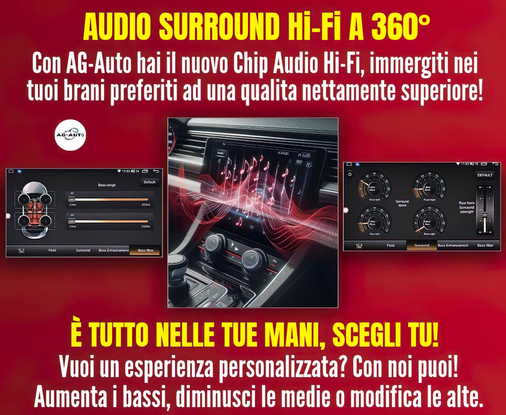 🔊 HiFi AG-Auto: EQ/DSP + amplificatore dedicato per un audio superiore + Uscite RCA con AUX e Subwoofer