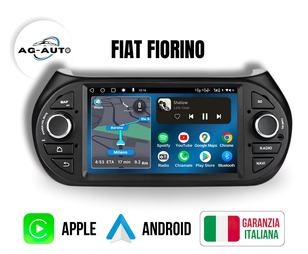 Fiat Fiorino - Qubo (2008/2017) | Autoradio 2 Din Android auto + Carplay / Stereo Touch 2/32gb | Navigatore GPS + Bluetooth + Wifi + 2 porte USB + AUX