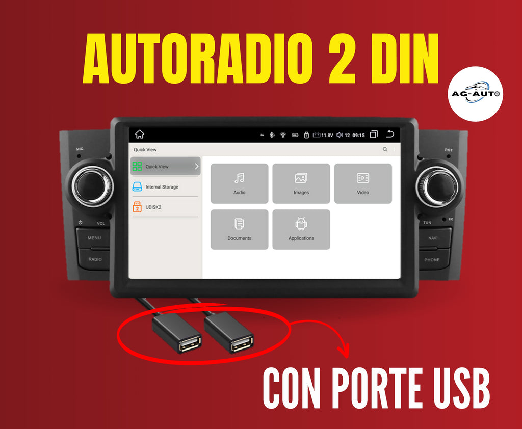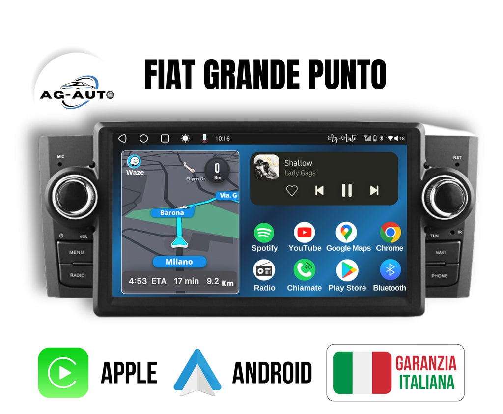 Fiat Grande punto (2007/2012) | Autoradio 2 Din Android auto + Carplay / Stereo Touch 2/32gb | Navigatore GPS + Bluetooth + Wifi + 2 porte USB + AUX