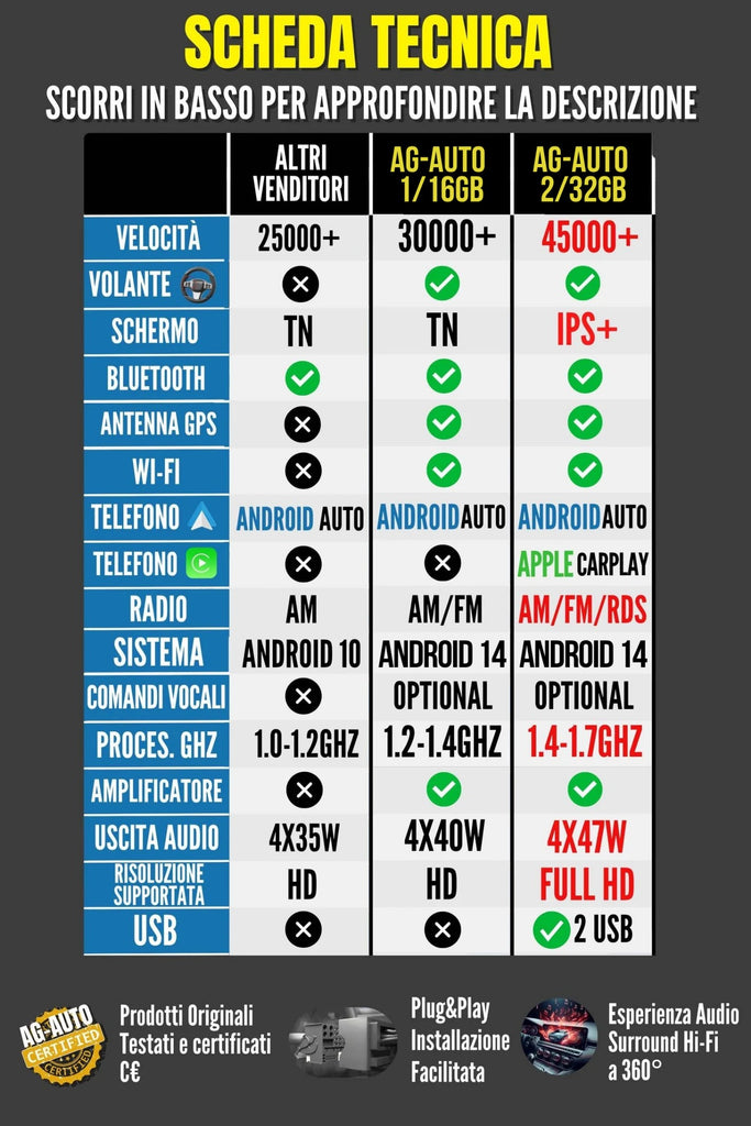 Controlla la Scheda Tecnica (Seconda foto) per scoprire le differenze.