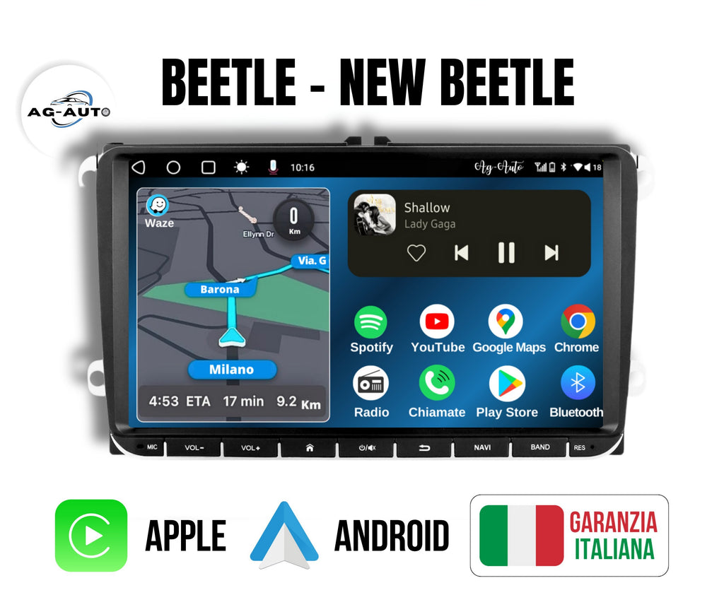 Volkswagen Beetle/New Beetle 2 (2011/2018) | 9" pollici Autoradio 2 Din Android auto + Carplay / vw Stereo Touch | Navigatore GPS + Bluetooth + Wifi