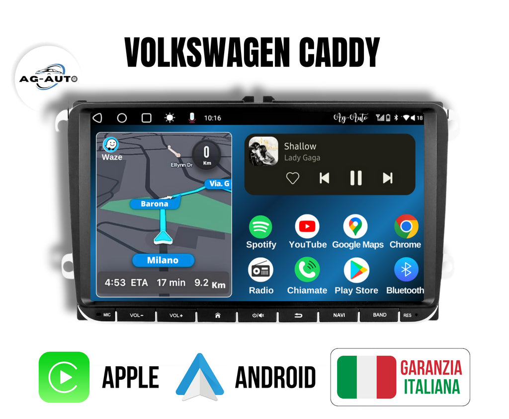 Volkswagen Caddy (2003/2018) | 9" pollici Autoradio 2 Din Android auto + Carplay / vw Stereo Touch | Navigatore GPS + Bluetooth + Wifi