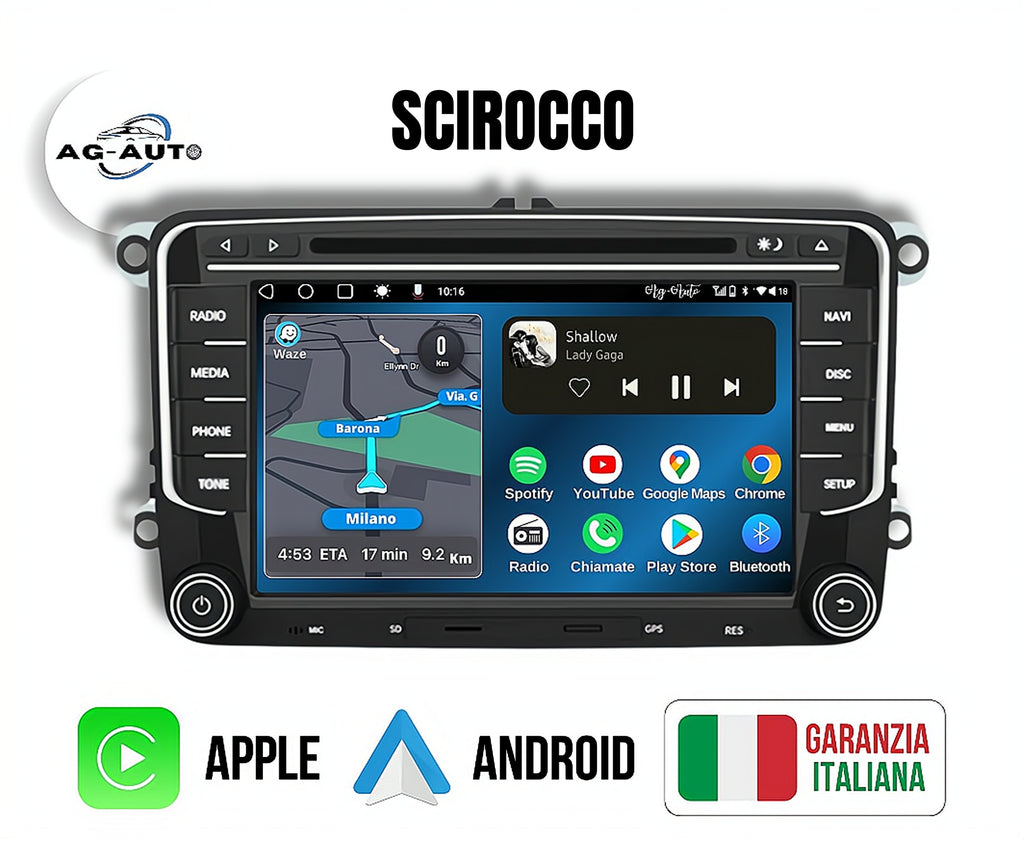 Volkswagen SD-CD-DVD Scirocco (2008/2013) | Autoradio 2 Din Android auto + Carplay / vw Stereo Touch | Navigatore GPS + Bluetooth + Wifi