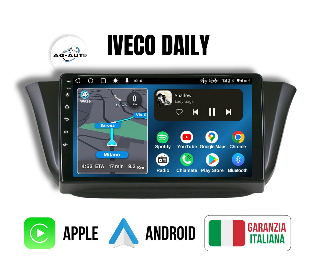 Iveco Daily (2013-2021) | 9 pollici - Mascherina Inclusa - Autoradio 2 Din Android auto + Carplay / Stereo Touch 2/64gb | Navigatore GPS + Bluetooth + Wifi + 2 prese USB + Aux