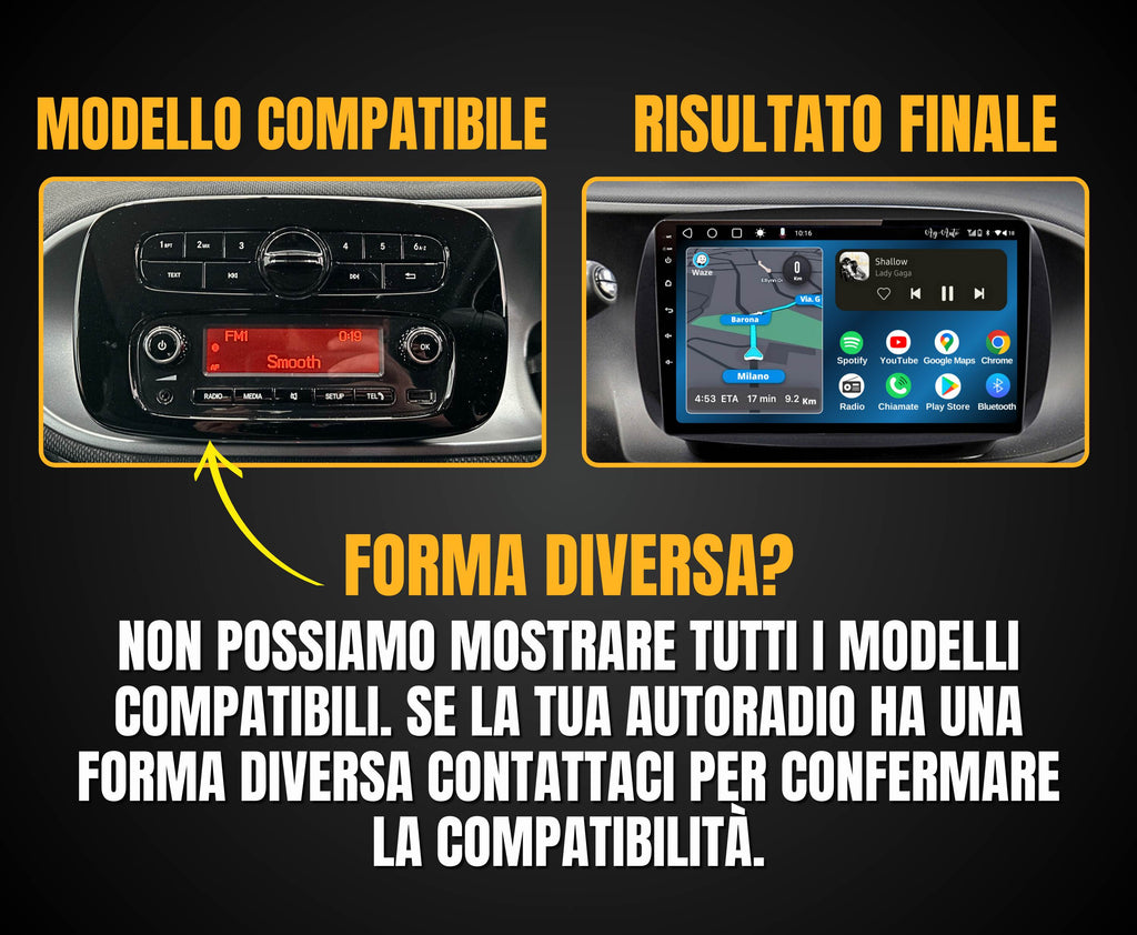 - Compatibilità Universale, visualizza tutto direttamente sull'autoradio.