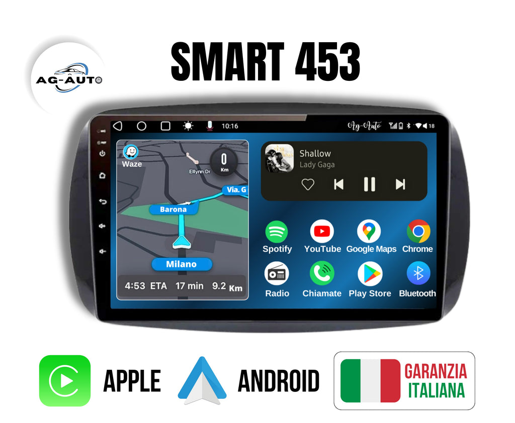Smart 453 Fortwo (2014/2020) | 9 pollici + Mascherina Inclusa - Autoradio 2 Din Android auto + Carplay / Stereo Touch 4/64gb | Navigatore GPS + Bluetooth + Wifi + 2 porte USB + AUX