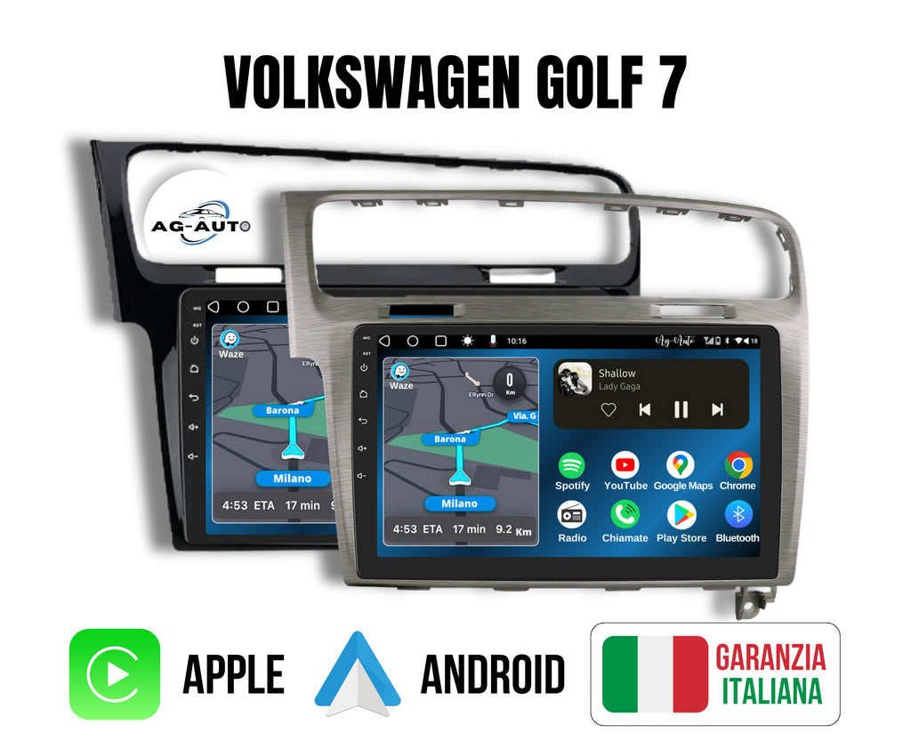 Volkswagen Golf 7 (2013/2017) | 10 pollici - Mascherina Inclusa Autoradio 2 Din Android auto + Carplay / vw mk7 Stereo Touch | 2x USB + Navigatore GPS + Bluetooth + Wifi + AUX
