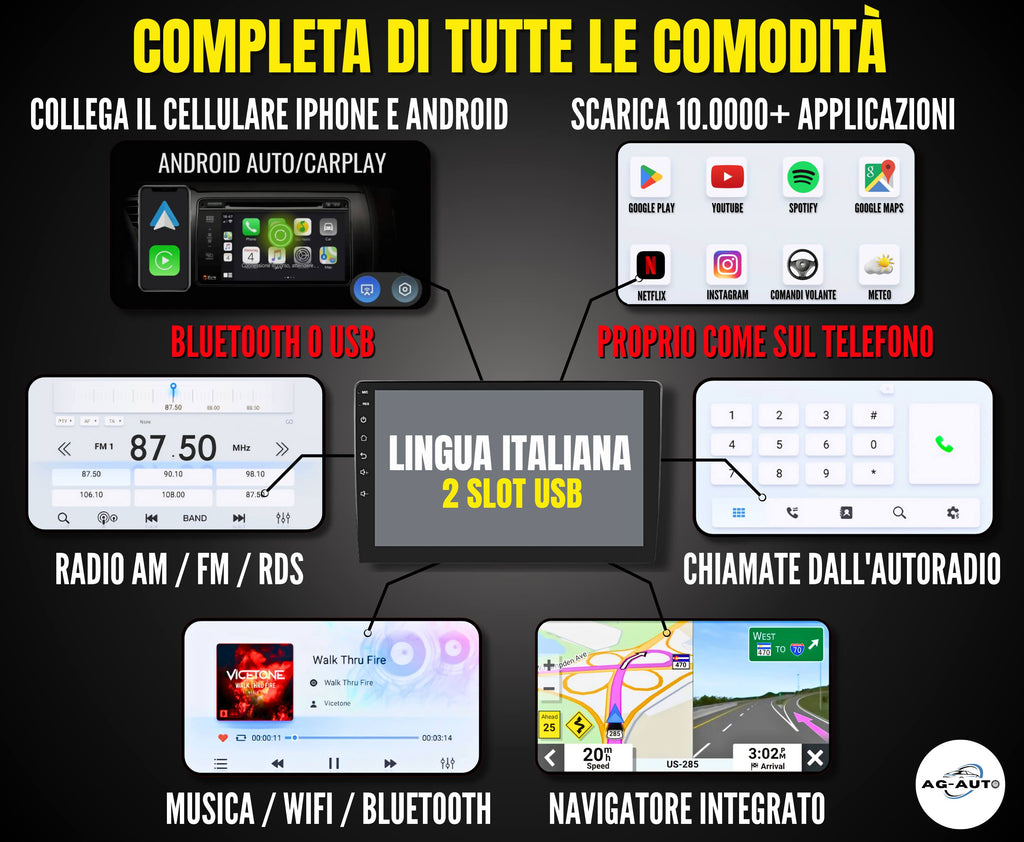 - Compatibilità Universale, visualizza tutto direttamente sull'autoradio.