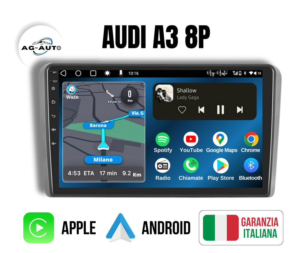Audi a3 /8p/rs3/Sportback (2003/2013) | 9 pollici - Mascherina Inclusa Autoradio 2 Din Android auto + Carplay / Stereo Touch | Navigatore GPS + Bluetooth + Wifi
