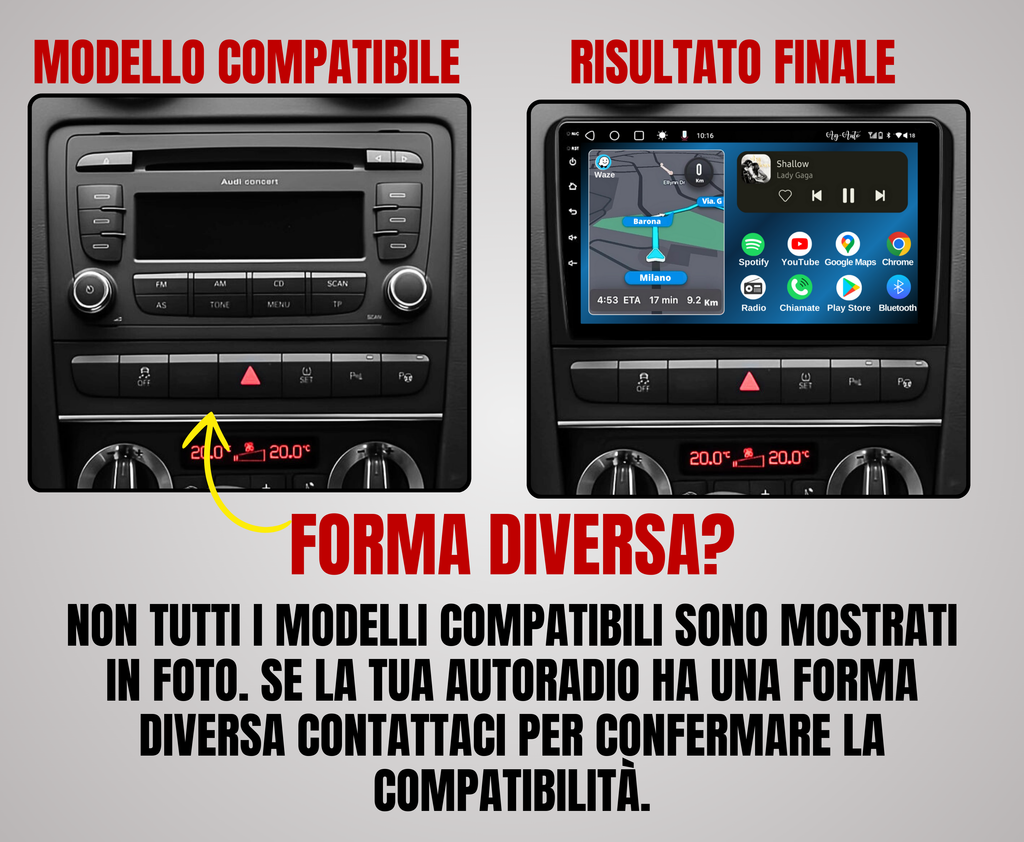 - Compatibilità Universale, visualizza tutto direttamente sull'autoradio.