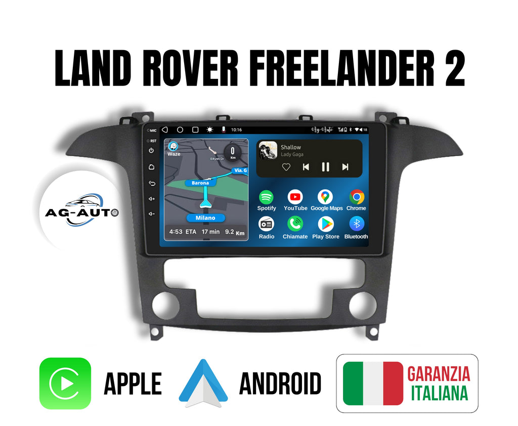 Land Rover Freelander (2006-2012) | 9 Pollici - Mascherina inclusa - Autoradio 2 Din Android auto + Carplay / Stereo Touch | Navigatore GPS + Bluetooth + Wifi + 2 prese USB + AUX