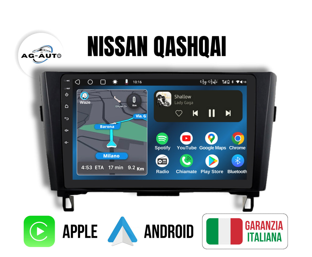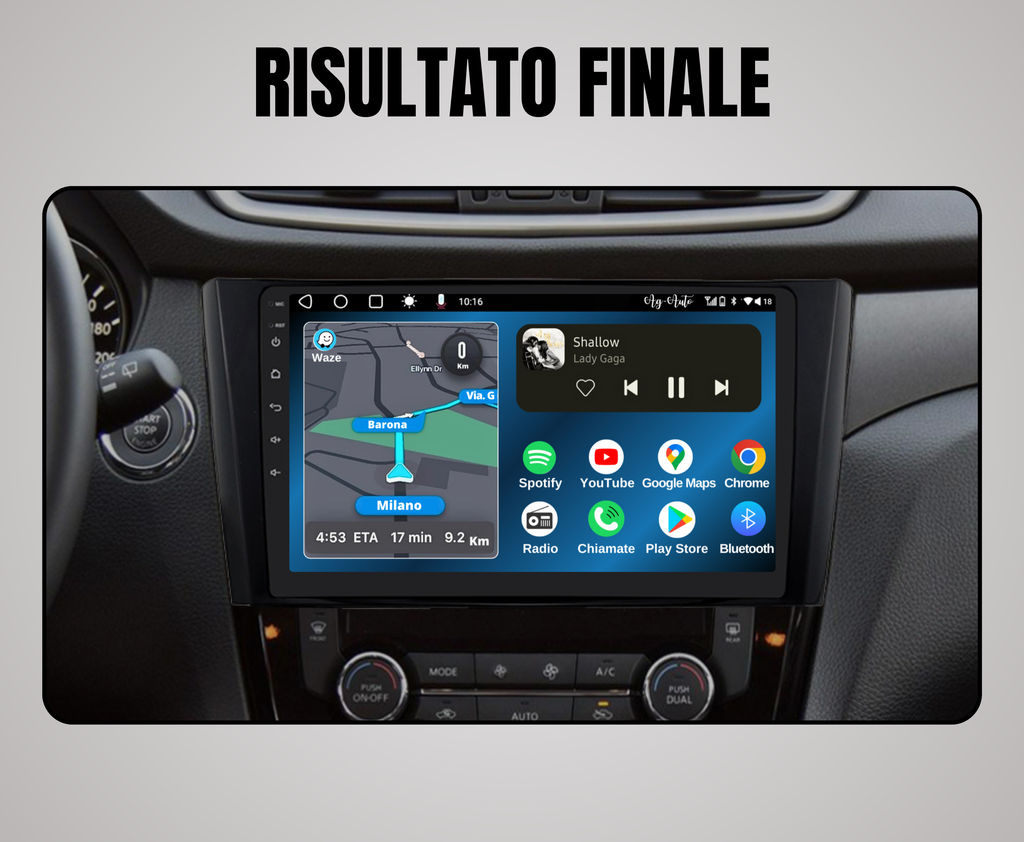 Nissan Qashqai (2013/2017) | 10 Pollici - Mascherina inclusa - Autoradio 2 Din Android auto + Carplay / Stereo Touch | Navigatore GPS + Bluetooth + Wifi + 2 prese USB + AUX